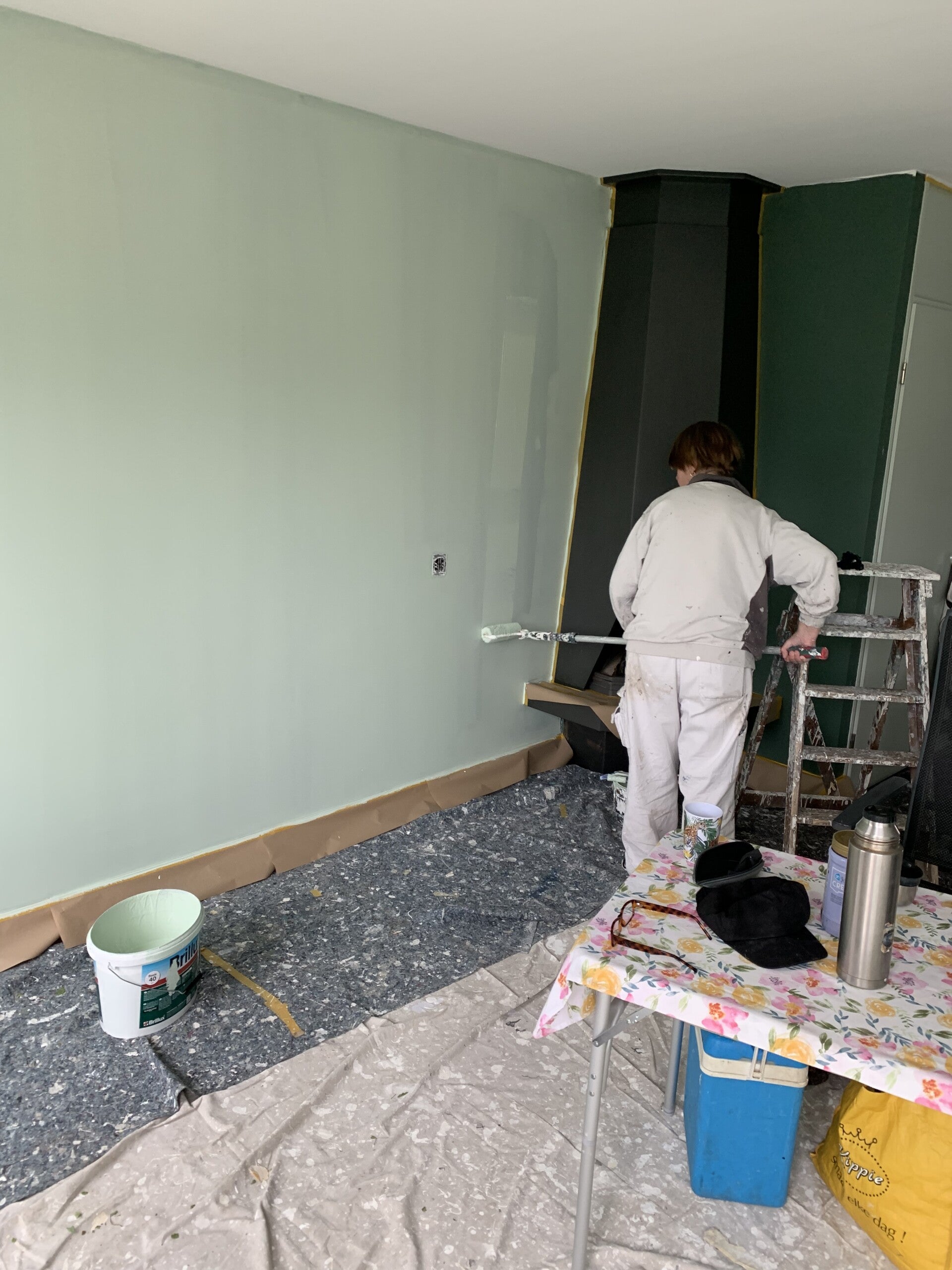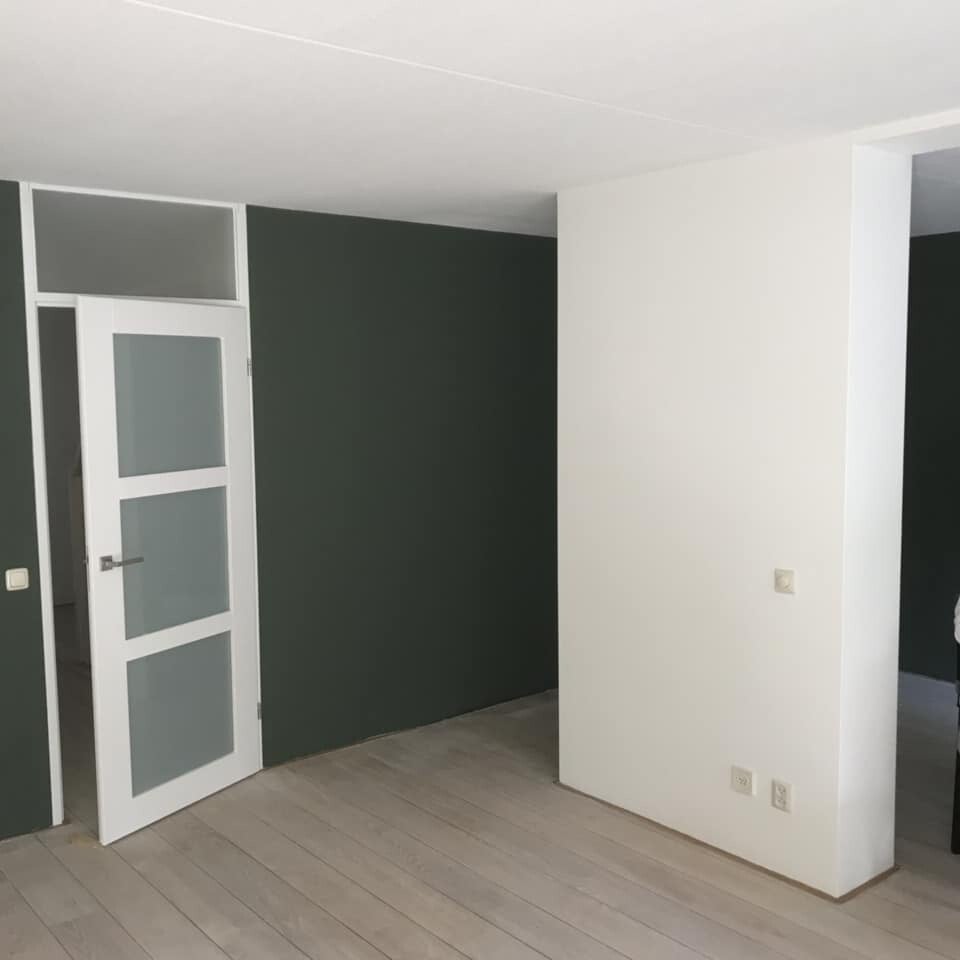 Muren witten, plafonds witten & wanden schilderen.